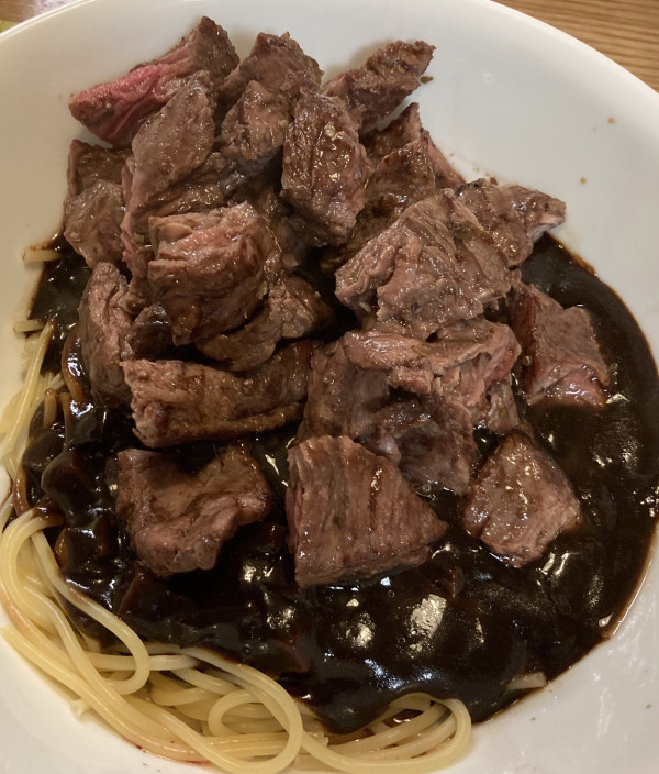 고기가 조금 들어간 소고기 짜장 소스 파스타