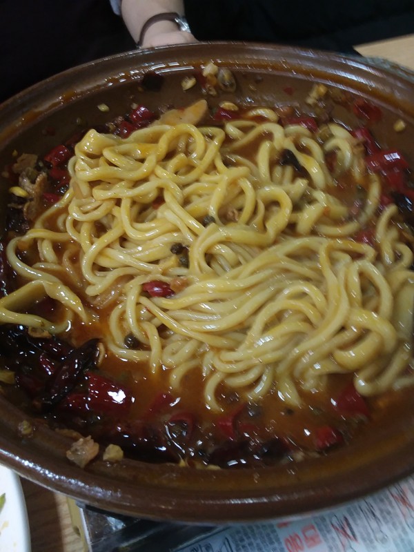 거기에 면 넣어 먹음