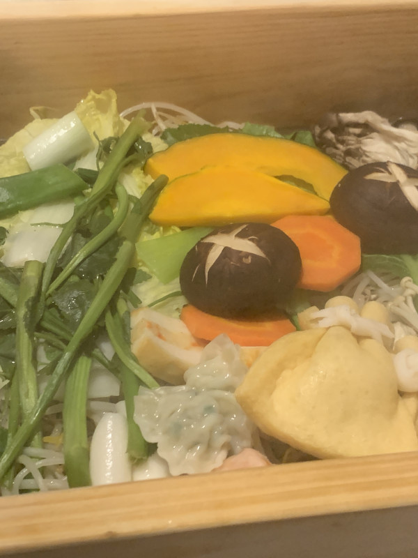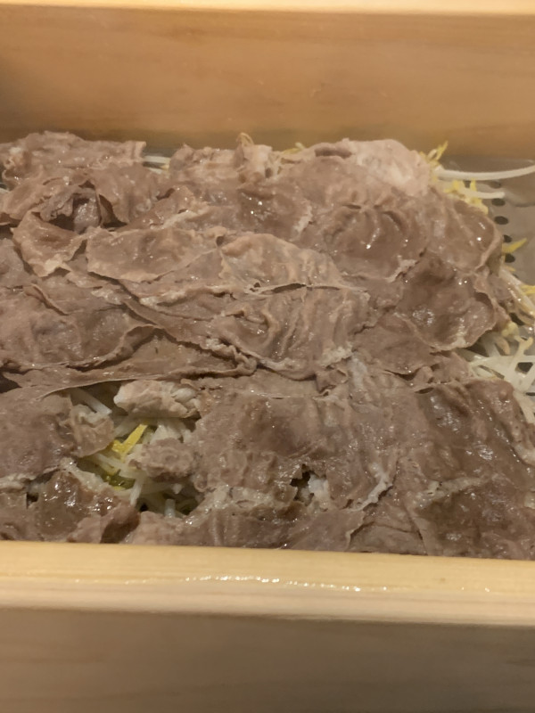 수육과 야채를 같이 쪘어요.