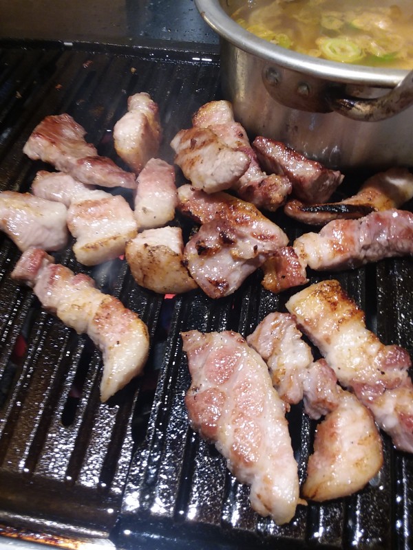 소금구이. 연탄에 구워요.