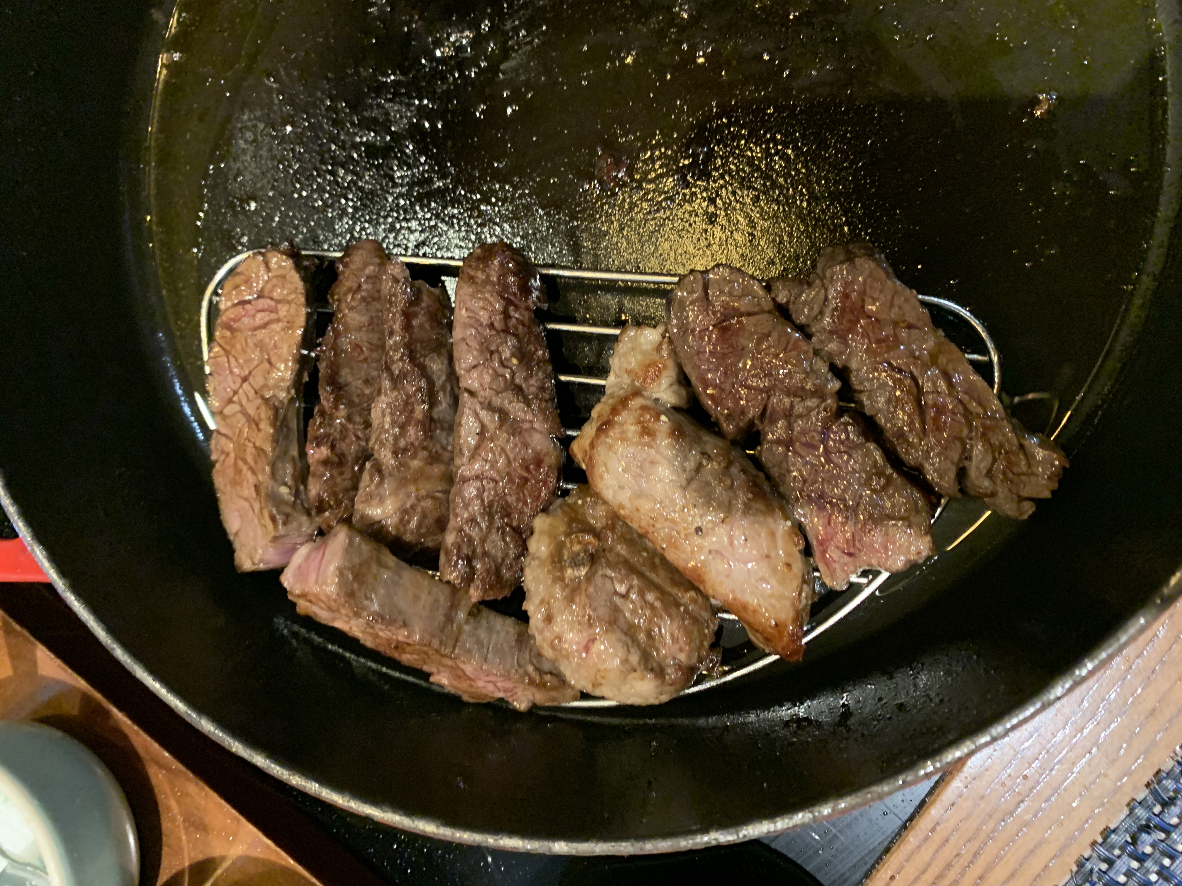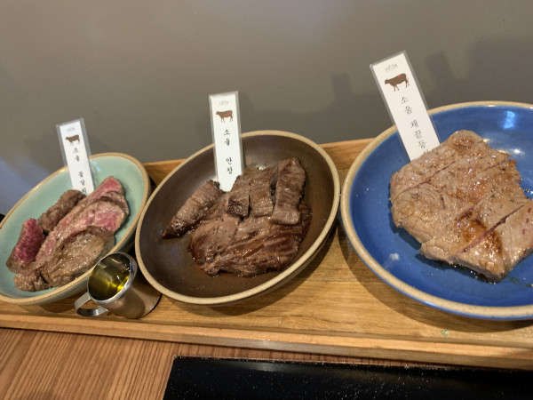 불판 위 고기와 불판 전 고기.