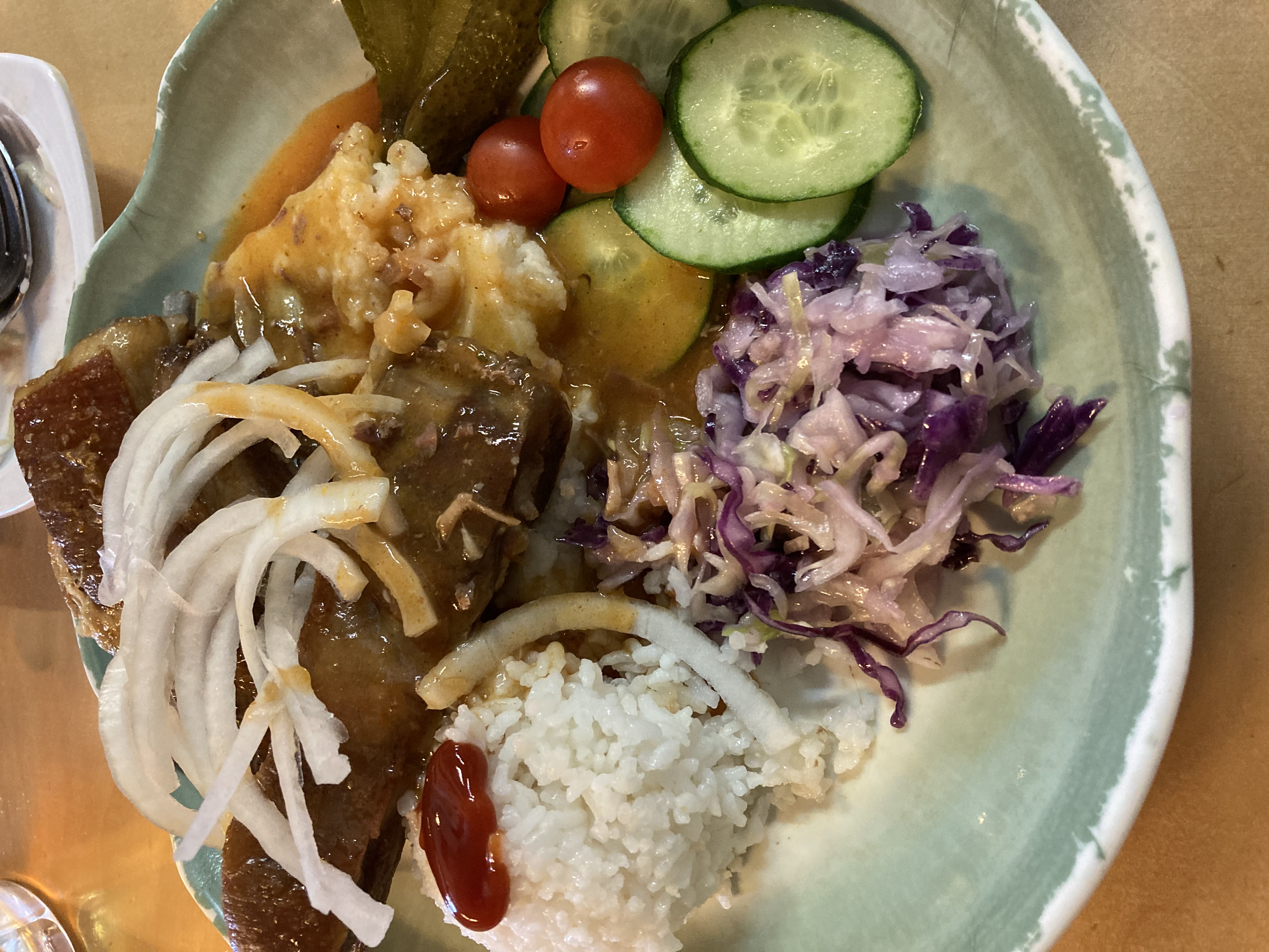 양갈비 덮밥과 감자 샐러드