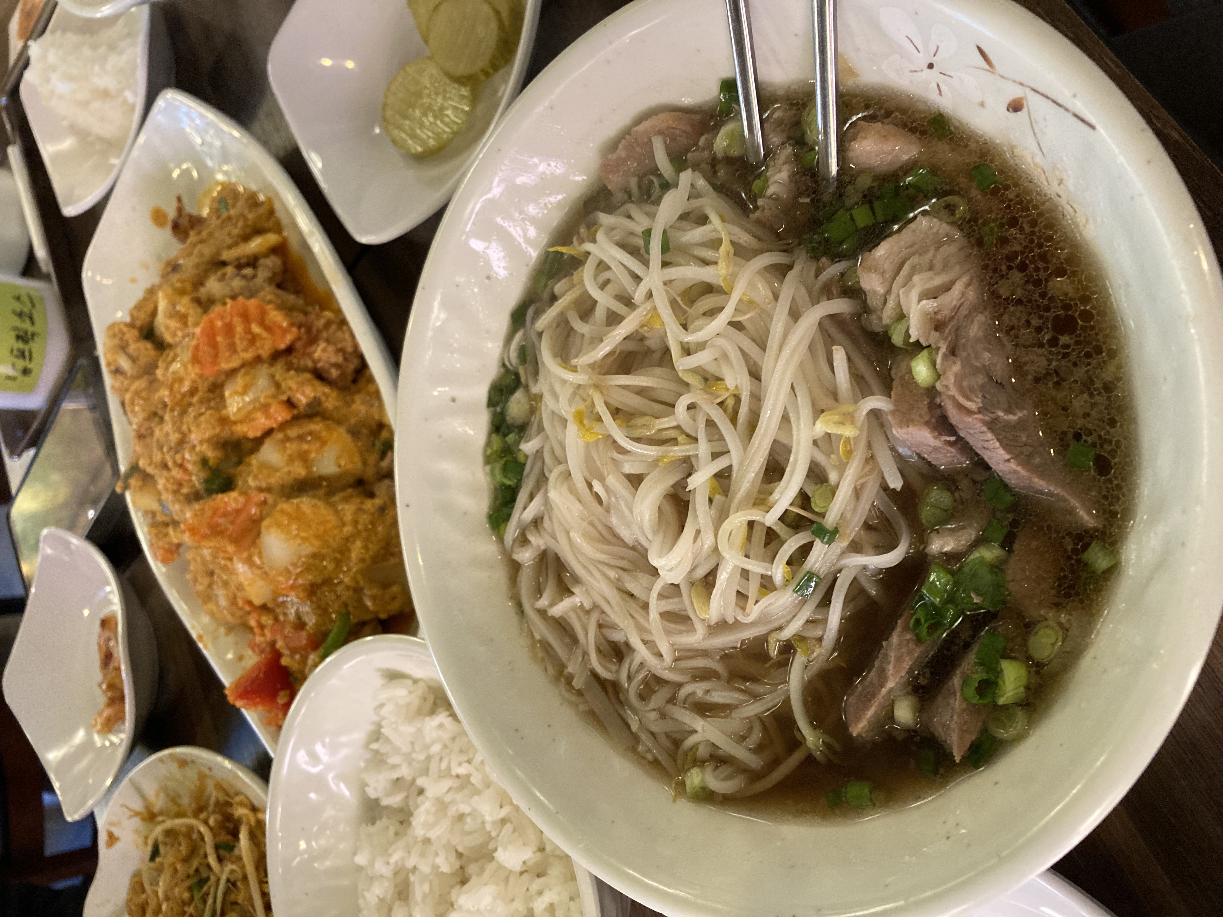 태국식 쌀국수와 풋팟쿵커리