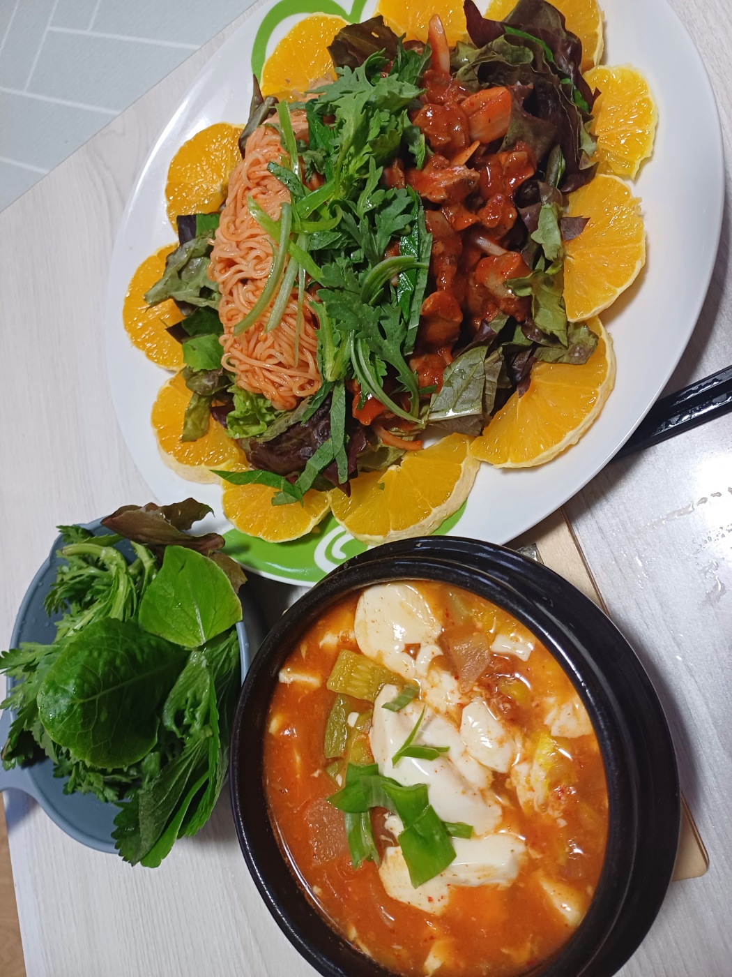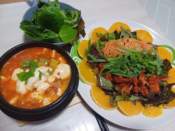 (집밥) 골뱅이 비빔면 과 순두부