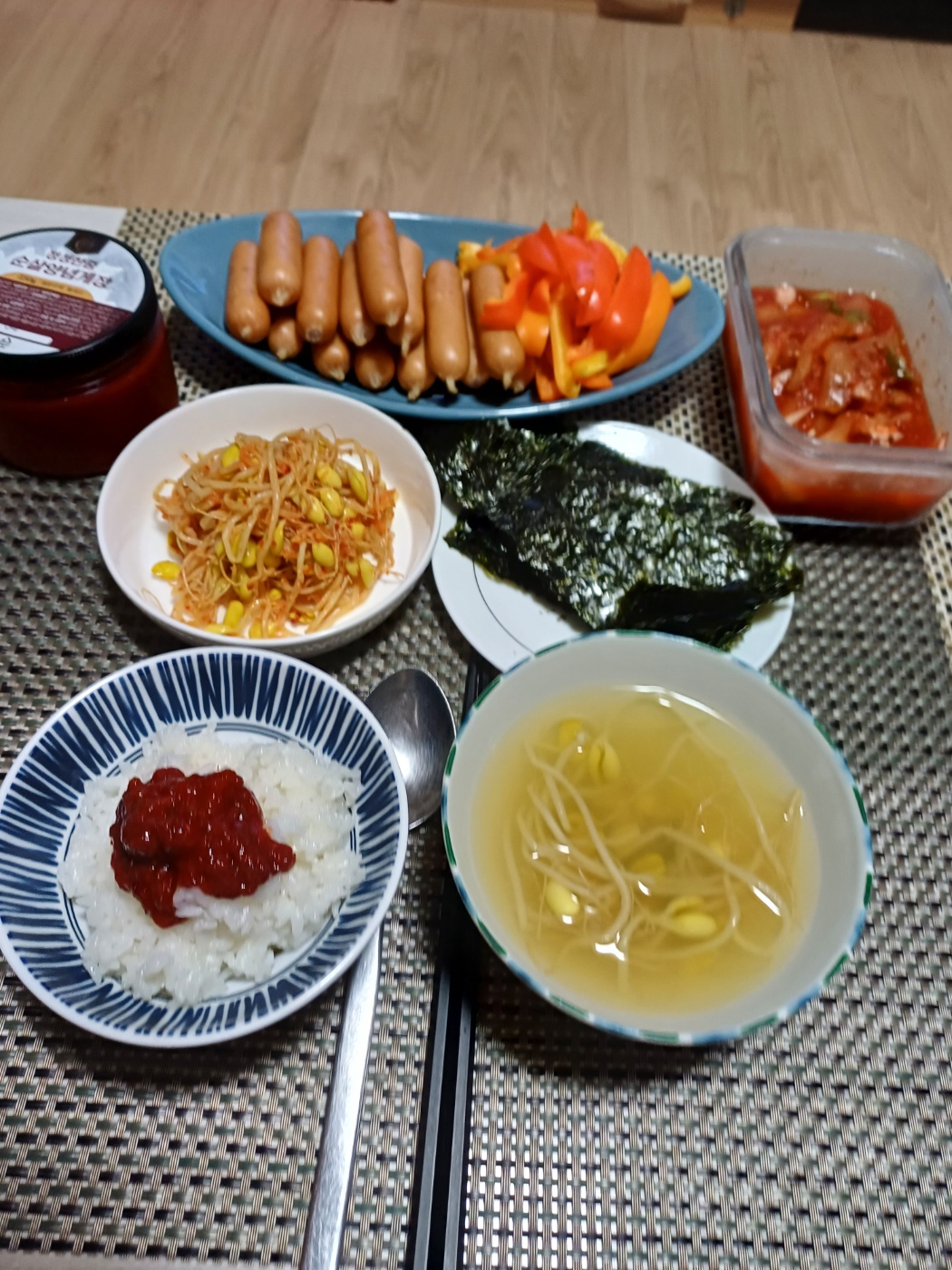에쎈뽀득 소세지, 콩나물국, 순살양념게장