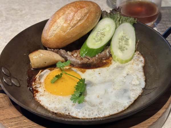 고수를 담은 계란과 스테이크