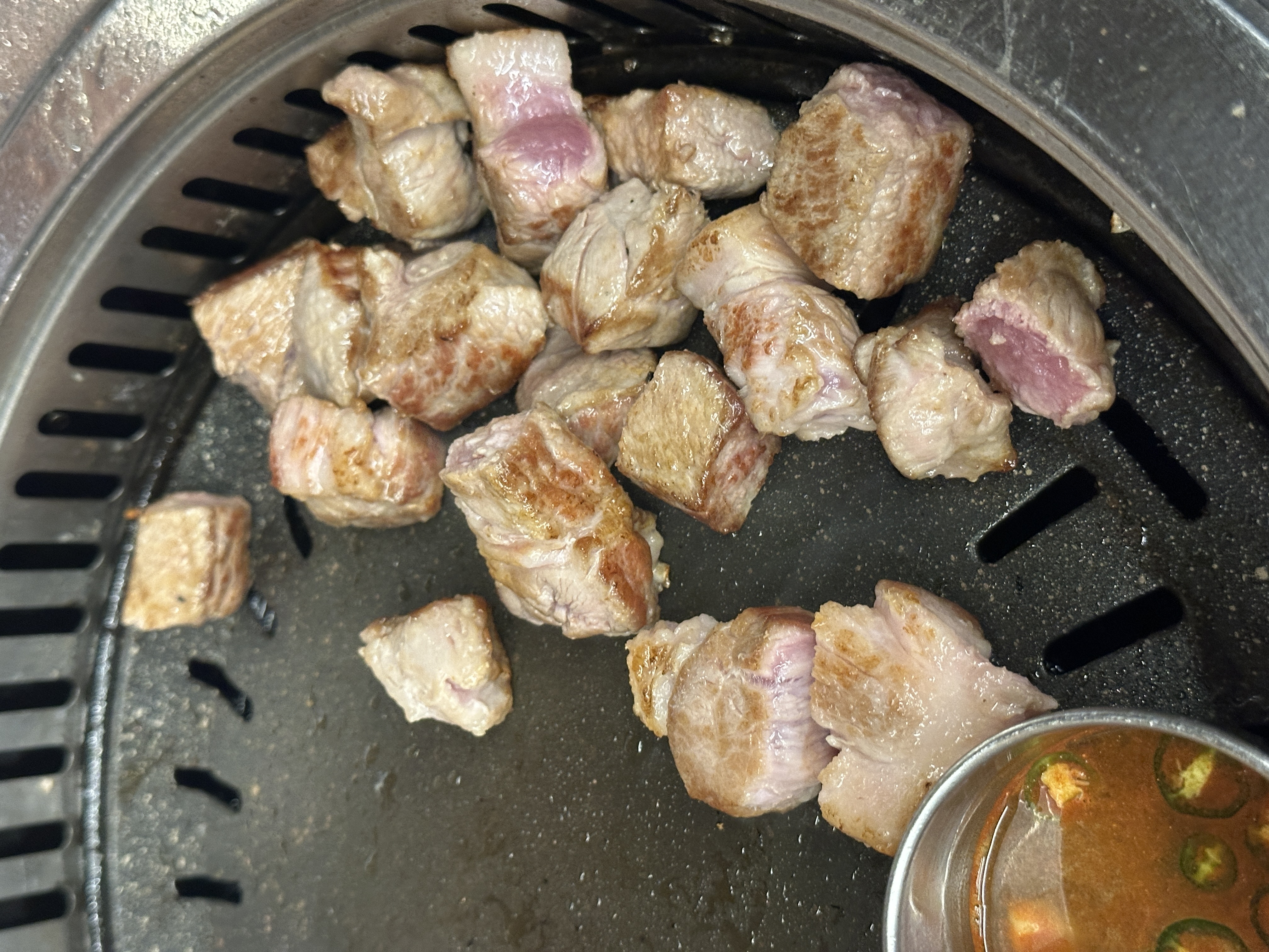 불판 위 목살과 항정살