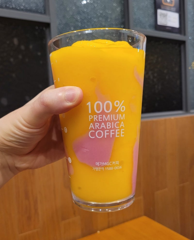 메가커피 신메뉴인 비타팝 드셔보셨나요 이거 망고맛 엄청 달달하면서 상콤하고 비타민까지 챙겨주는 진짜 제 최애 음료가 대버렸어요 ㅠㅠ 짱 맛 꼭 드셔보세요 강추 !! 다만 좀 상~콤해가지고 신거 잘 못드신분들은 호불호 갈릴듯 ㅠㅠ