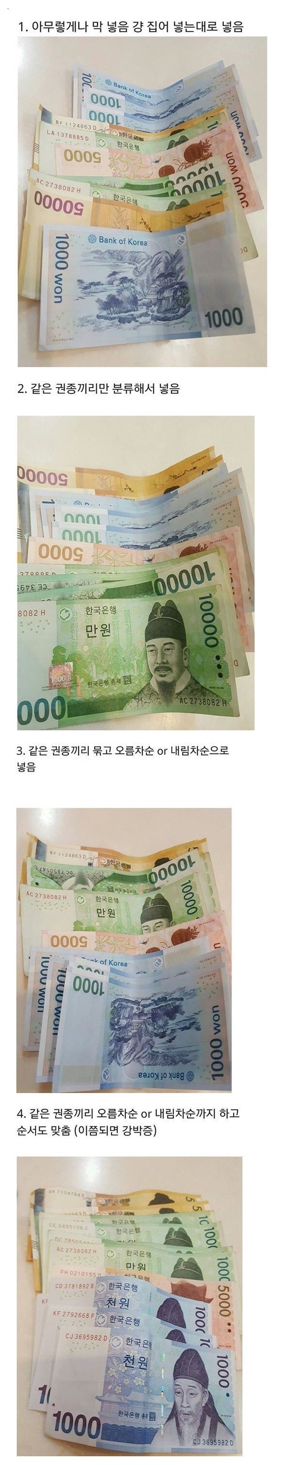 지갑에 지폐 넣는 유형