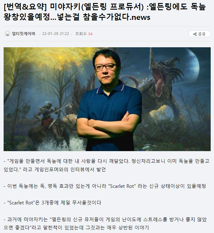 소울시리즈 비틱들도 절레절레하고 있을 엘든링 컨텐츠 예고