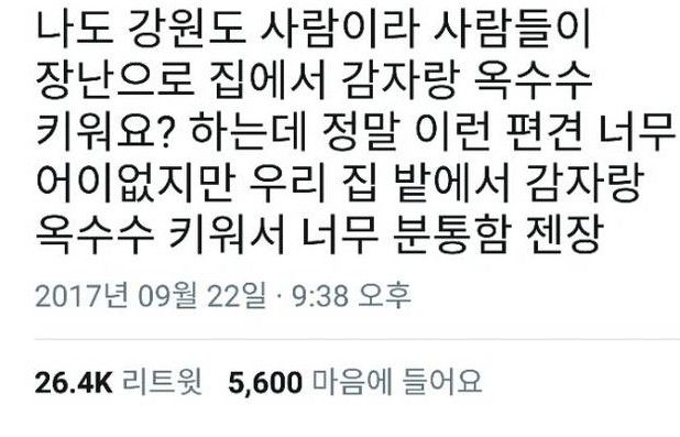 집이 강원도면 혹시 감자랑 옥수수 키워요?