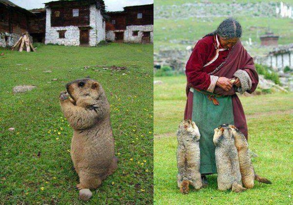 " 마모트 "들 엄마 밥줘 ~ 양 손을 모으고 굽신굽신 귀여운척 ~