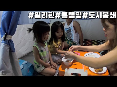 격리된 딸들을 위해 그냥 집에다 텐트 치고 캠핑 했습니다!! 반응 실화? | 필리핀 봉쇄 브이로그 | 한필커플