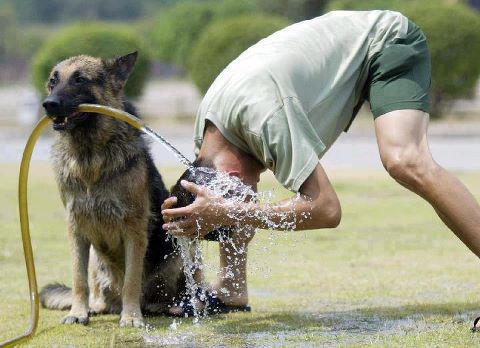 다음에 내가 씻을땐 너도 호스 "물고" 있어라~