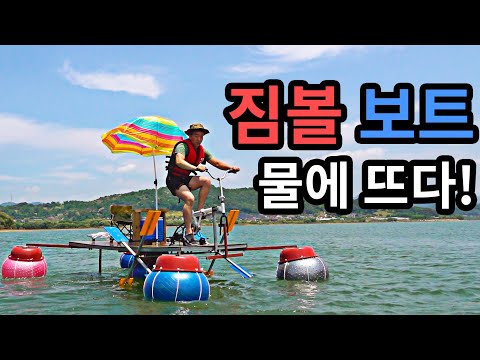 짐볼로 만든 보트에서 직접 만든 낚싯대로 배스 잡기!/배스/런커/맥가이버/마초맨/자연인/DIY/빠지