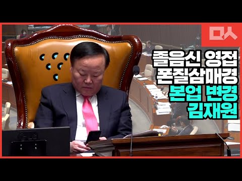 김재원, 졸음신 영접과 폰질삼매경. 가끔하는 진행도 실수.