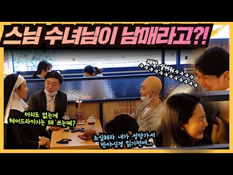 몰카] Eng sub)스님 수녀님이 남매라고?! 부랄친구 목사님 스님 9탄! 이 시리즈는 계속 해야 한다!!! 미남 미녀 커플 숨을 못쉬네 ㅋㅋㅋ (feat.현실남매)