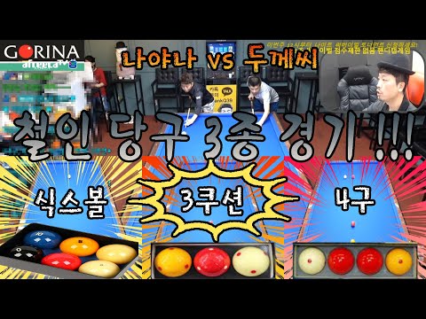 철인 당구 3종 경기 !!!' 나야나 vs 두께씨!! 시합 상금을 걸고 붙습니다!!! 1경기 3쿠션 경기 [죽빵전문 땡Q방송 …