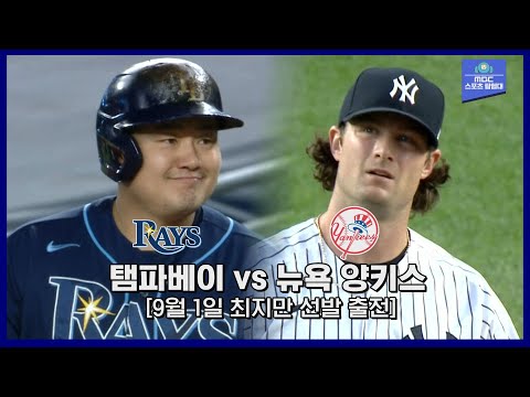 MLB 하이라이트] '게릿 콜 천적=최지만' 오늘도 여지없이 입증, 홈런 포함 3타수 3안타 2볼넷 100% 출루 / 9월 1일 탬파베이 vs 뉴욕 양키스