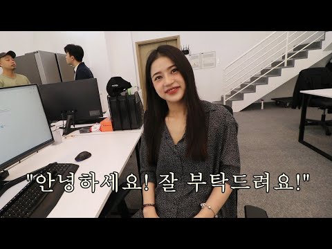 그녀가 회사에 첫 출근했습니다.