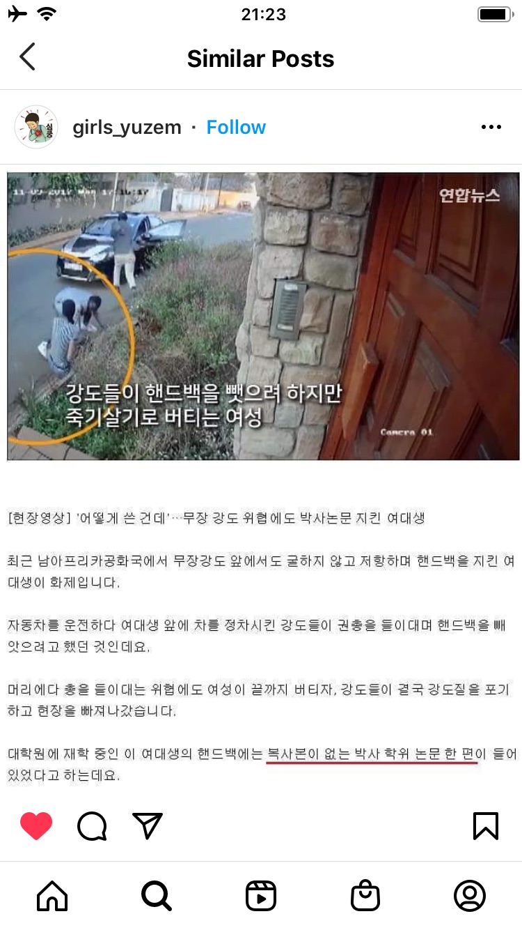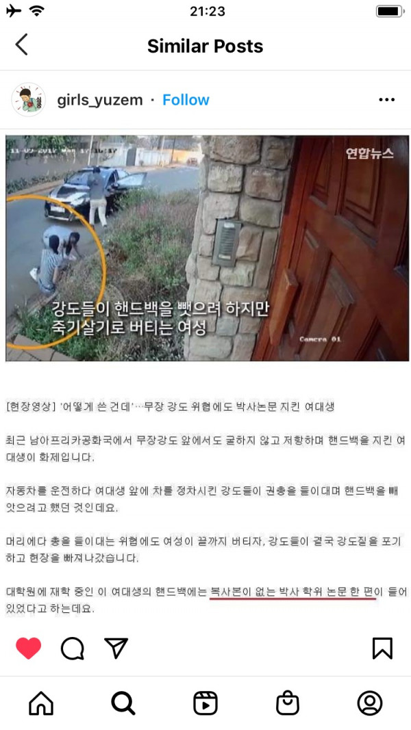 대학생이 목숨 걸고 지킨 핸드백