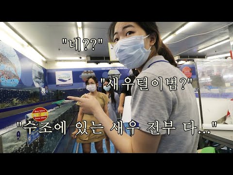 직원이 많아져서 베트남 대형 마트 수조에 있는 징거미 새우를 전부 다 털었습니다. 당황한 마트직원...