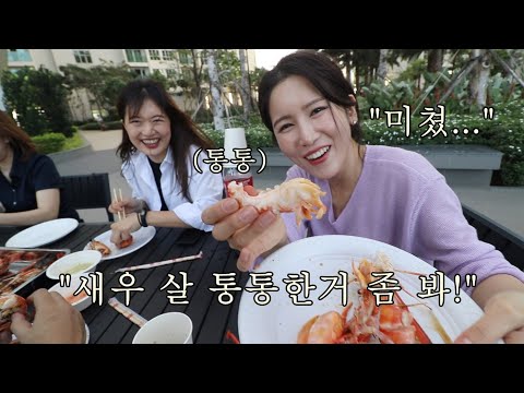 새로 입사한 그녀를 위해 징거미 새우 250마리를 구워먹었습니다. 평생 먹을 양이 순삭...