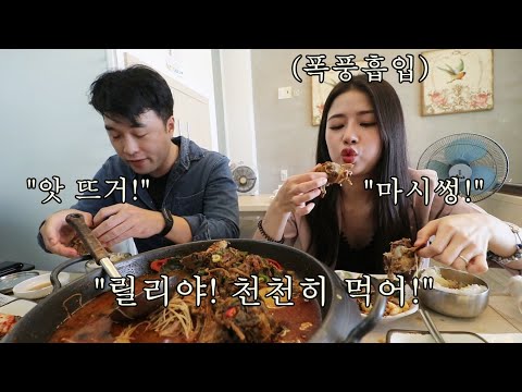 그녀에게 매운 감자탕을 사줬는데 양손으로 폭풍흡입 하네요... 외국인 맞아??ㅋㅋㅋㅋ
