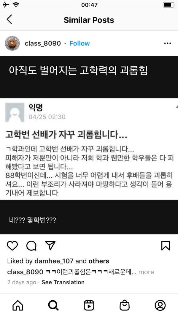 고학번이 괴롭혀요