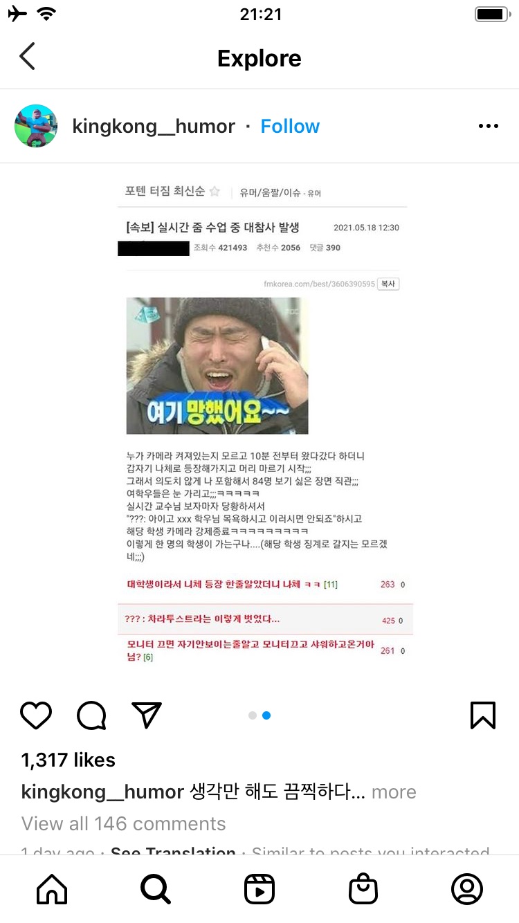 실시간 수업 중 대참사