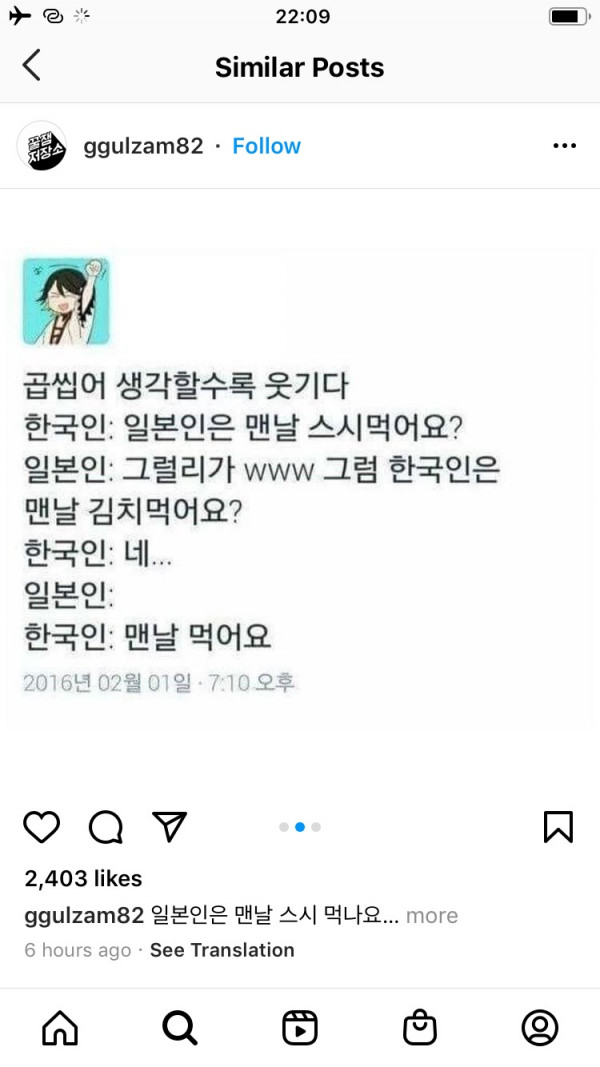 한국인은 맨날 김치 먹음.
