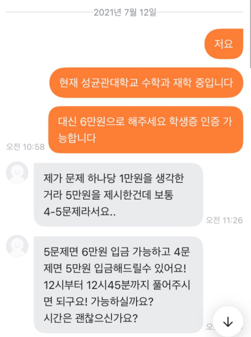 5만원만 주면 문제 풀어주는 사람