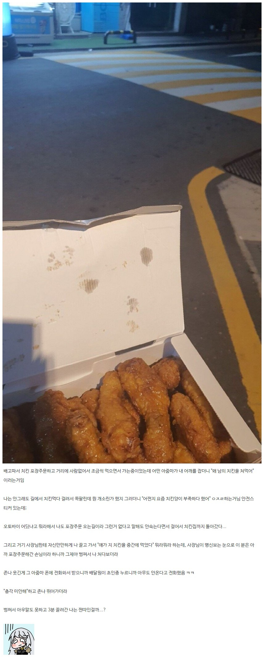 길에서 치킨 먹다 봉변 당한 사람