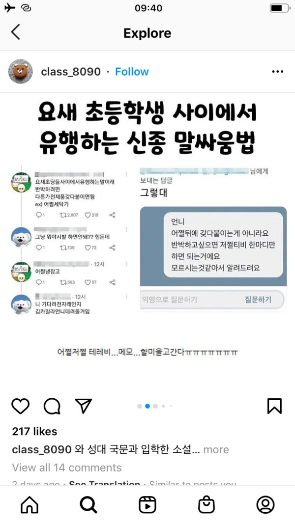요즘 초딩들의 말싸움