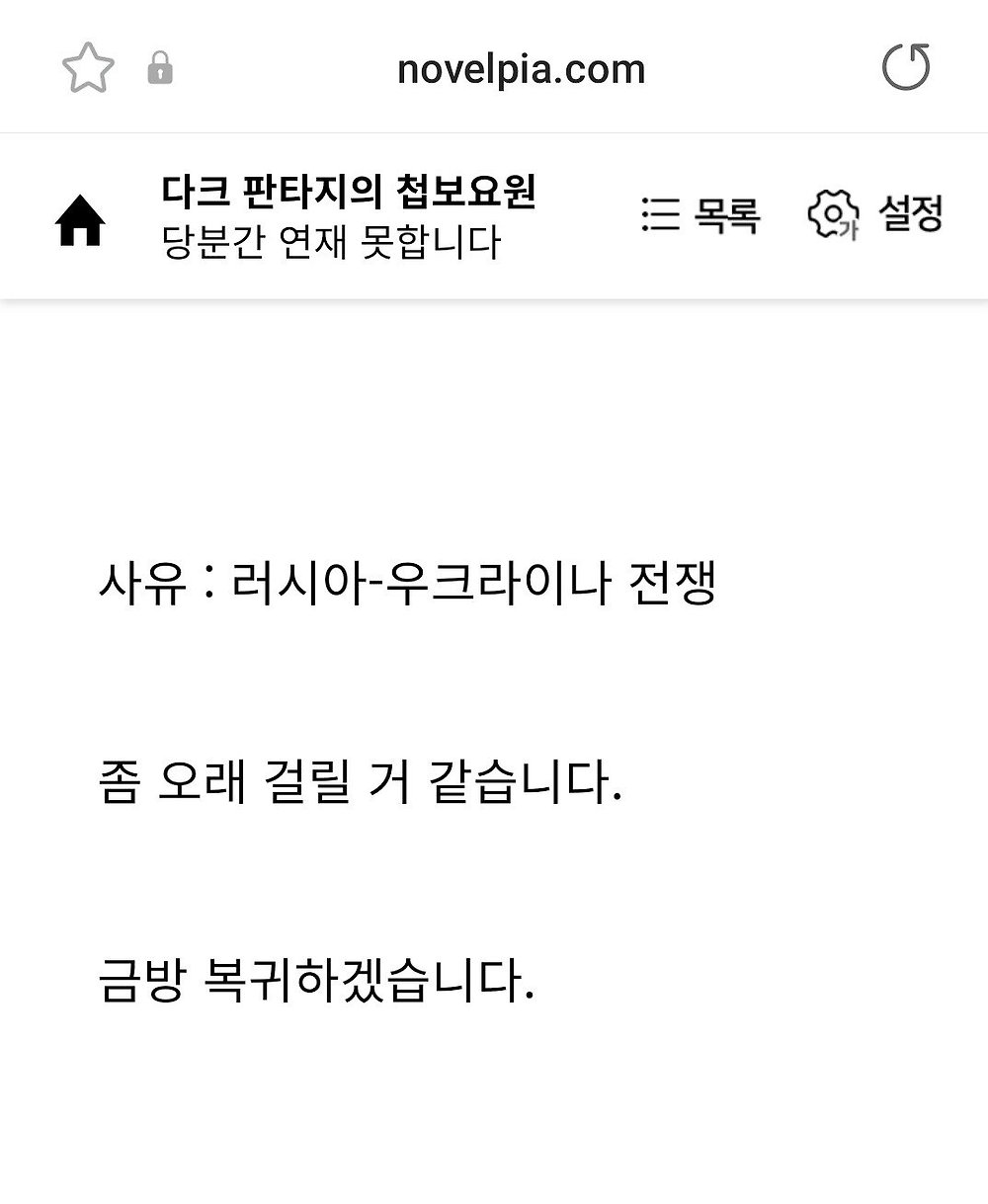 한 웹소설 작가의 휴재 사유