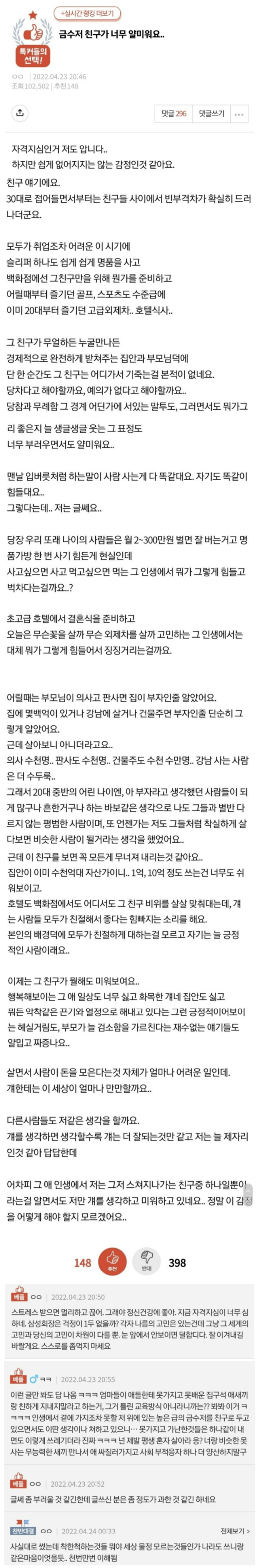 금수저 친구가 너무 얄미워요
