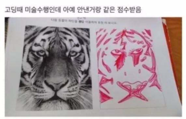 완전 예술적인데...호랭이가 사자한테 엄청 혼난 표정