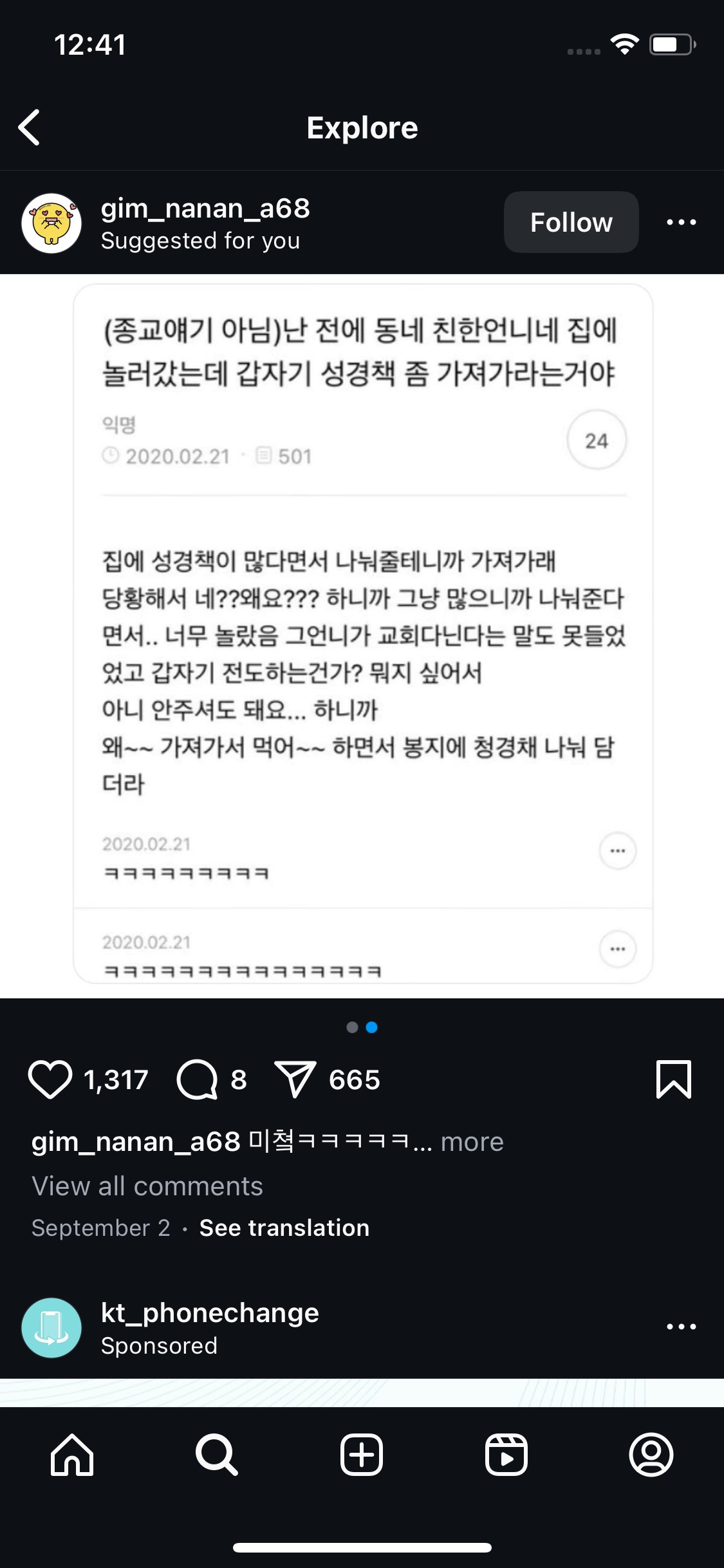 성경책을 나눠 주겠다는 언니