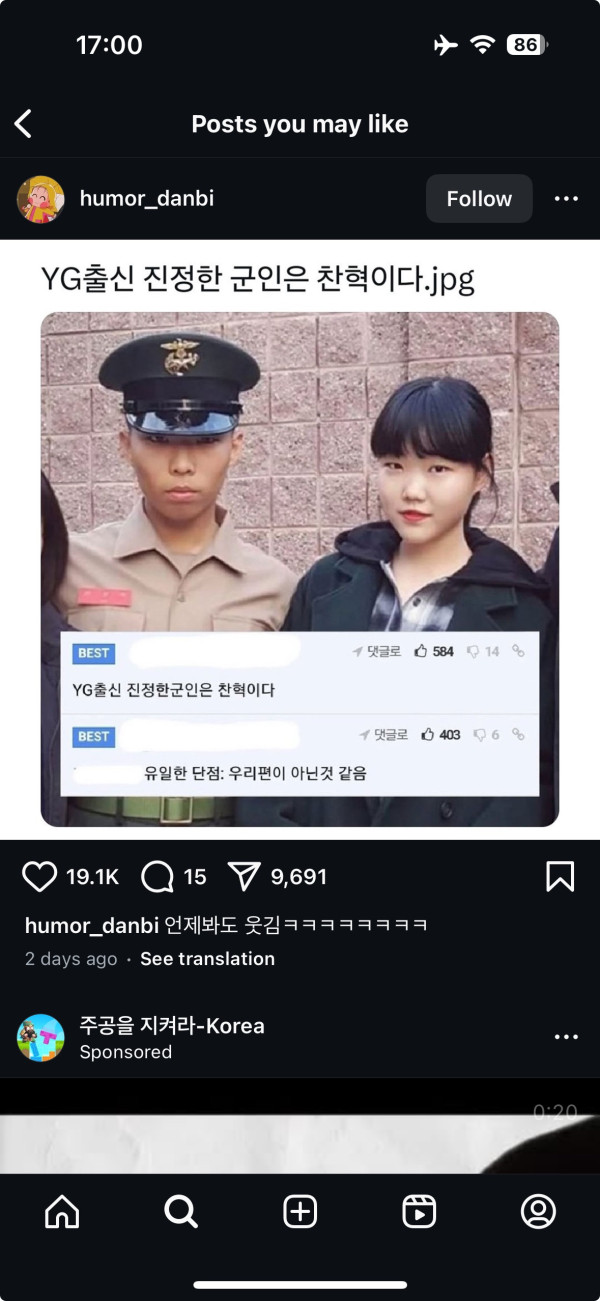 YG출신 진정한 군인은 찬혁이다.jpg