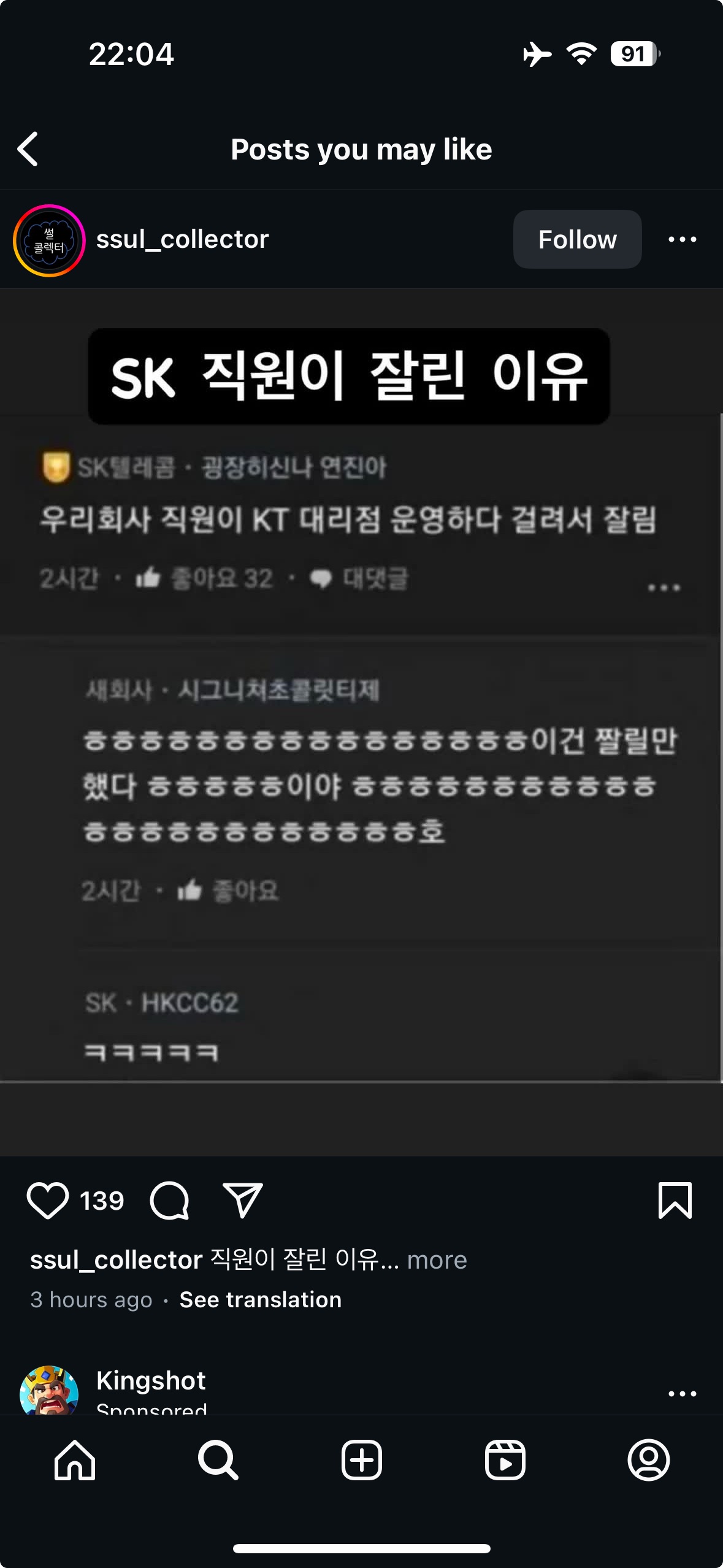 SK 직원이 잘린 이유