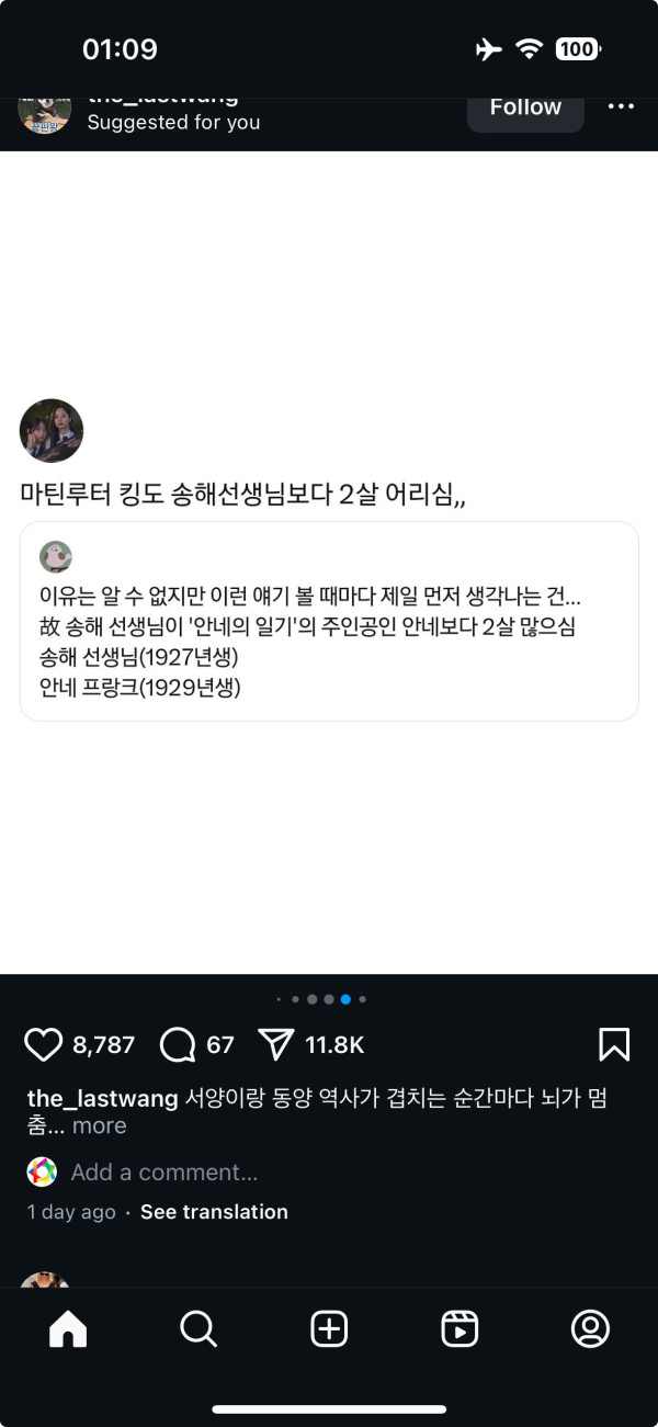안네 프랑크와 마틴 루터 킹도 송해 선생님보다 아래