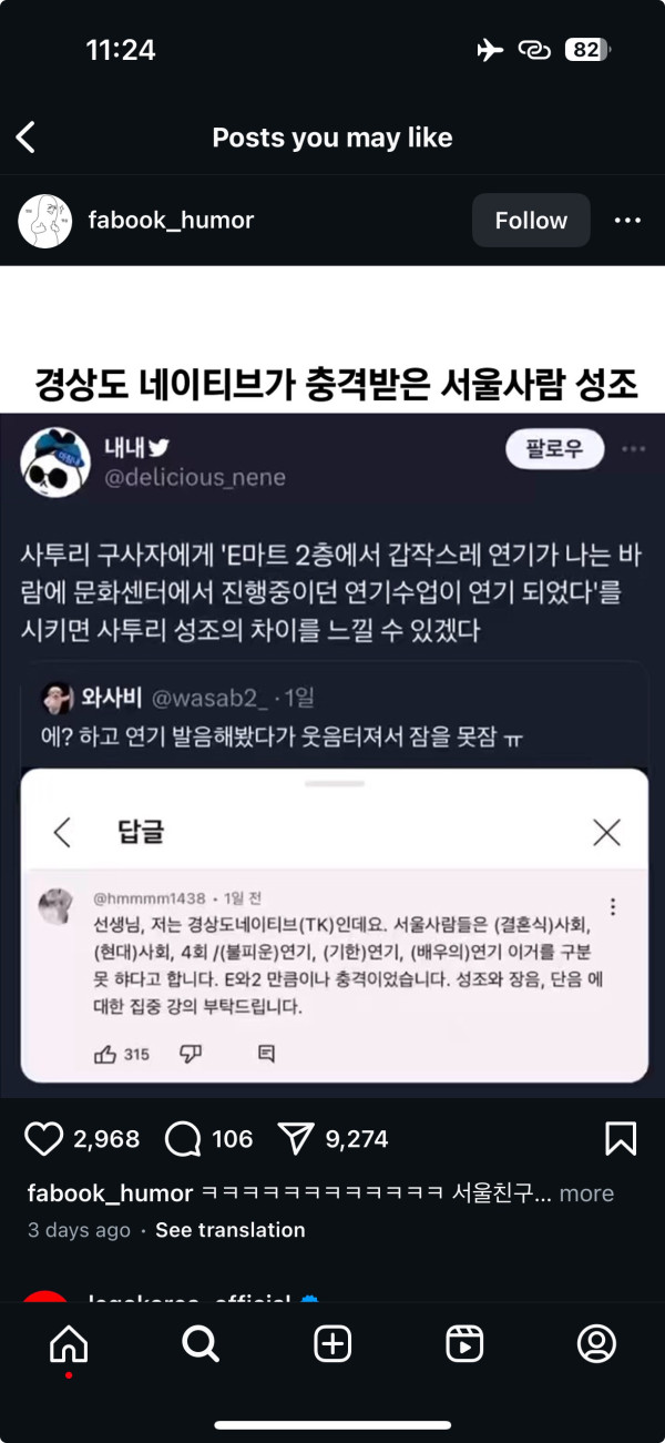 경상도 네이티브가 충격받은 서울사람 성조