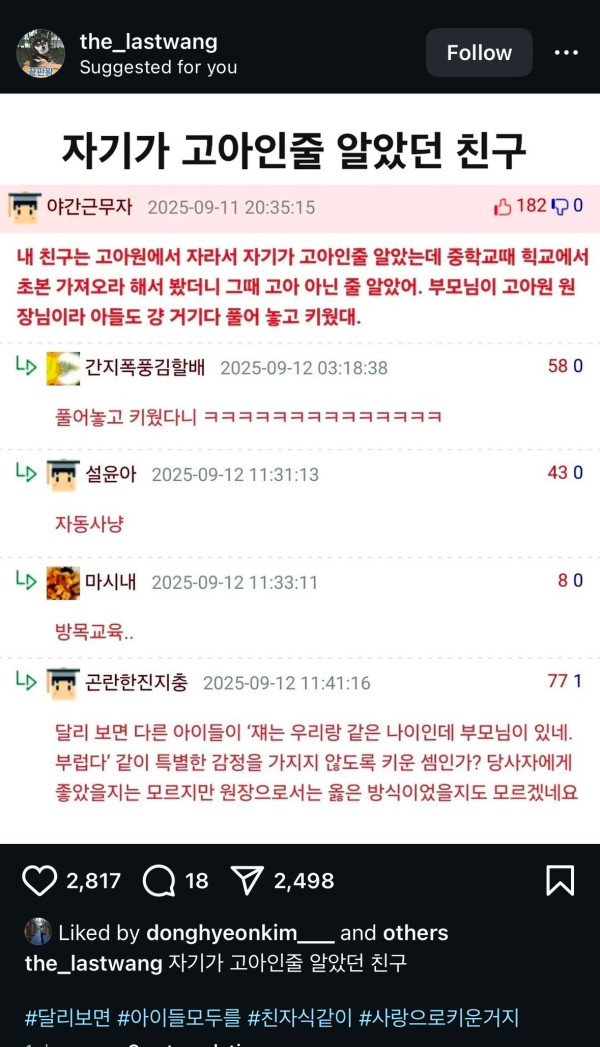 자기가 고아인줄 알았던 친구