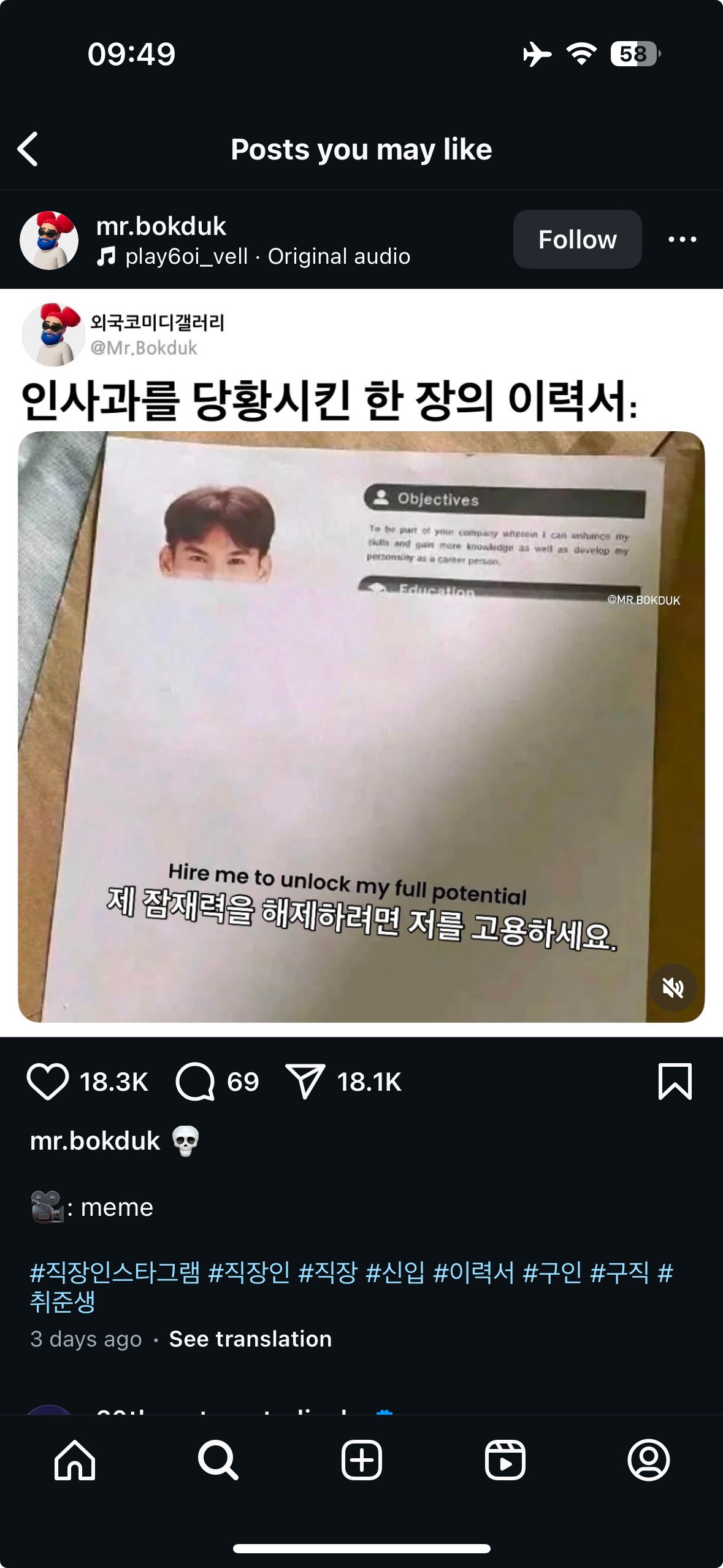인사과를 당황시킨 이력서