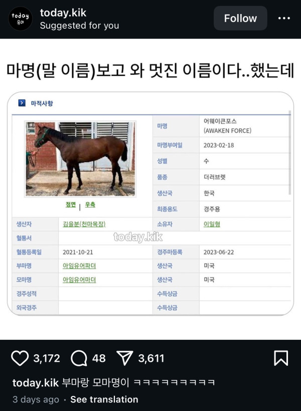 후덜덜한 말 이름