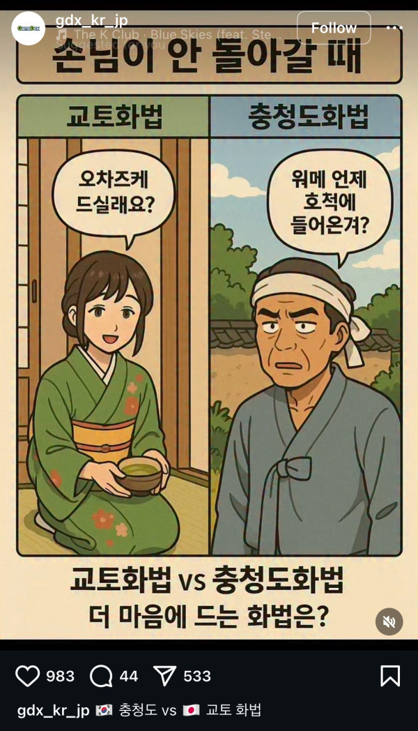손님이 안 돌아갈때 교토화법과 충청도화법