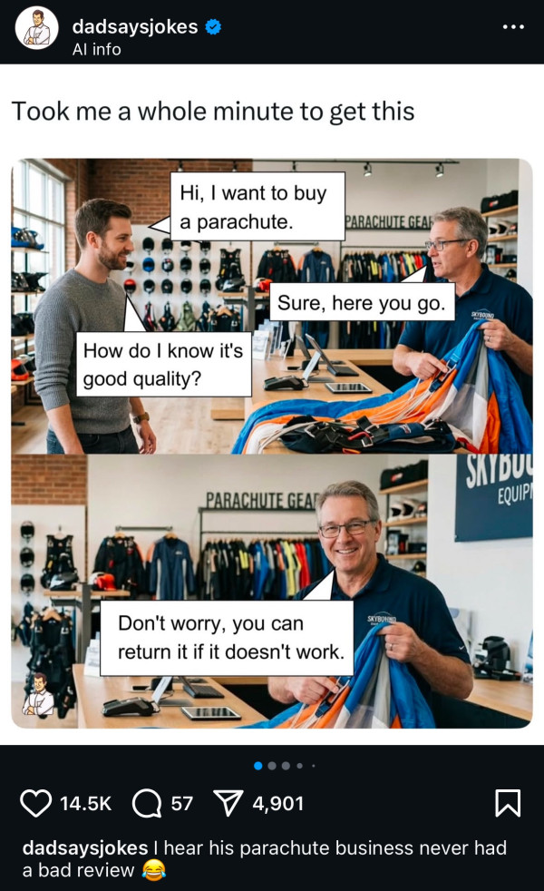 낙하산 사는데 동작 안 하면 반품하라고...