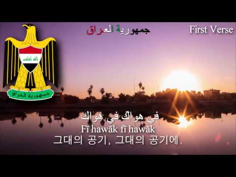 كورال[1][3][4] | Kūrāl: Mawṭinī mawṭinī Al-Jalālu wa-l-jamālu wa-s-sanāʾu wa-l-bahāʾu Fī rubāk fī rubāk Wa-l-ḥayātu wa-n-najātu wa-l-hanāʾu wa-r-rajā Fī hawāk fī hawāk Hal ʾarāk hal ʾarāk ???? Sāliman munaʿʿaman wa-gāniman mukarraman ???? Hal ʾarāk fī ʾulāk Tablugu s-simāk tablugu s-simāk Mawṭinī mawṭinī