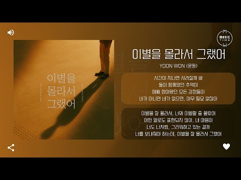 YOON WON (윤원) - 이별을 몰라서 그랬어 (I didn't Know Goodbye) [가사]