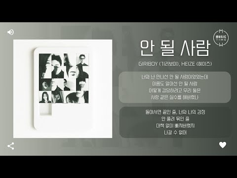 GIRIBOY (기리보이), Heize (헤이즈) - 안 될 사람 (Never Meant to Be) [가사]